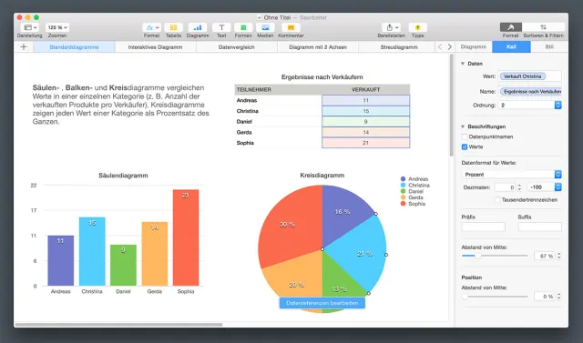 Die iWork-Suite erfüllt die drei klassischen Anforderungen der Bürowelt: Textverarbeitung, Tabellenkalkulation und Präsentation. Namentlich wären das: Pages. Die Textverarbeitung Pages versteht sich sowohl mit klassischen Berichten in Endlosform, als auch mit komplexeren Layouts, die frei auf der Seite angeordnet werden können. Wie bei den anderen iWork-Paketen erleichtern zahlreiche professionell gestaltete Vorlagen den Einstieg. Numbers. Die Tabellenkalkulation Numbers bietet alle Formeln und Berechnungsmöglichkeiten, die man im geschäftlichen Alltag so braucht. Im Gegensatz zu Excel und anderen Konkurrenten verfügt Numbers über Layout-Funktionen, mit denen Bilder integriert oder mehrere Tabellen auf derselben Seite angeordnet werden können.