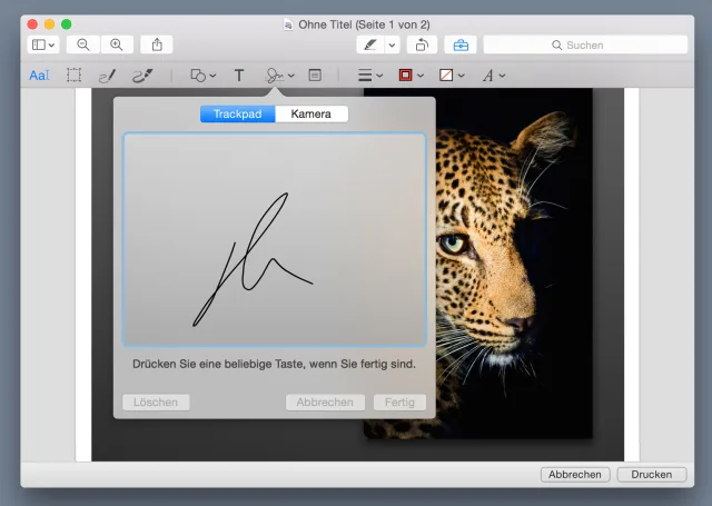 Das Trackpad lässt sich auch einspannen, um PDF-Dateien durch eine Unterschrift abzusegnen. Dabei wird die Eingabe erstaunlich schnell und fast ohne Verzögerung umgesetzt.