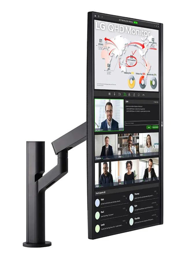 Neu sind auch die beiden 27- und 32-Zoll-Modelle 27QP88D und 32PQ880, die jeweils eine QHD-Auflösung, USB-C und HDR10 bieten. Zur Auswahl steht jetzt zudem ein Monitor-Schwenkarm, an den zwei der 27-Zoll-Displays passen und sich dabei genauso flexibel bewegen lassen wie beim Single-Modell. Die beiden Bildschirme können beispielsweise im Hochformat nebeneinander oder im Querformat übereinander platziert werden.