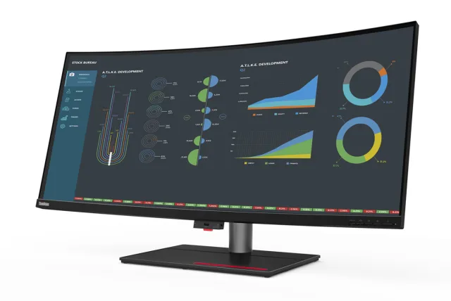Von der Masse der Business-Monitore hebt sich der Lenovo ThinkVision P40w-20 nicht nur durch seine hohe Auflösung von 5120 x 2160 Pixeln (WUHD) ab. Das dezent gewölbte 39,7-Zoll-Gerät ist neben dem LG 40WP95X-W auch einer der ersten Bildschirme mit Thunderbolt 4. Wie bei Thunderbolt 3 sind darüber Datentransfers von bis zu 40 GByte/s möglich. Doch während der Vorgänger nur maximal 4K bis 60 Hz überträgt, kann der ThinkVision P40w-20 über Thunderbolt 4 seine native 5K-Auflösung mit 75 Hz ausgeben. Da Lenovo seinen Monitor gleich mit zwei Thunderbolt-4-Ports ausstattet, macht ihn das ideal für Multi-Monitor-Setups und generell für Arbeitsumgebungen, in denen viele Informationen gleichzeitig im Blick behalten werden müssen. Ein Notebook oder PC mit Thunderbolt 4 vorausgesetzt, lassen sich etwa zwei ThinkVision-P40w-20-Geräte in Reihe schalten, wobei jedes seine volle 5K-Auflösung darstellen kann. Ein KVM-Switch gehört ebenfalls zur Ausstattung.