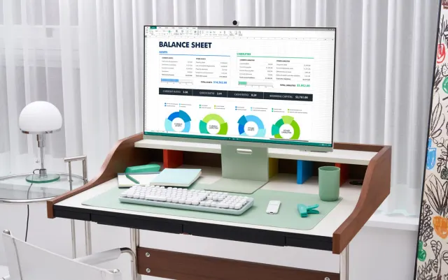Mit den Displays der Ergo-Serie sorgt LG für frischen Wind im Monitor-Bereich. Nutzer können sie an ihrem flexiblen, mit zwei Drehgelenken ausgestatteten Schwenkarm näher zu sich ziehen oder zur Seite schieben, ohne den schmalen Standfuss zu versetzen, der auf dem Tisch zudem fast keinen Platz beansprucht.