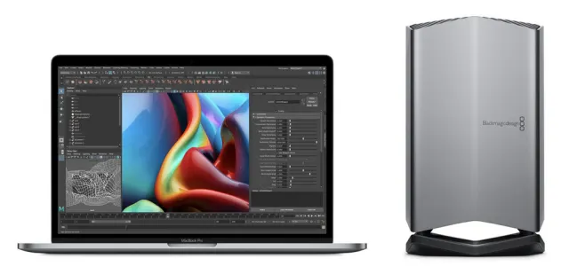 GPU: Bei der GPU müssen zwei Aspekte beachtet werden. Intern ist im besten Fall eine AMD Radeon Pro 5500M mit 8 GB GDDR6-Grafikspeicher verbaut. Hier kommt jedoch die Möglichkeit hinzu, die Grafikleistung massiv in die Höhe zu treiben, indem über Thunderbolt 3 eine oder mehrere eGPUs angeschlossen werden, etwa die von Blackmagic – und dann werden die Grenzen für die meisten Anwender aufgehoben.