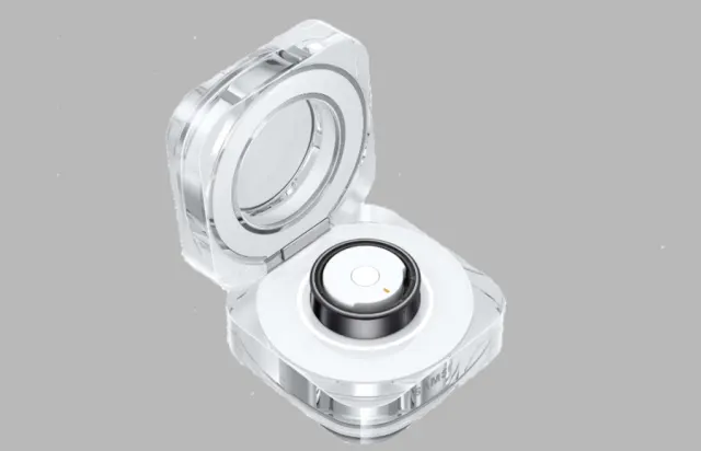 Der Ring kann beidhändig jeweils am Ring- oder auch Zeigefinger getragen werden, wiegt 2,4 Gramm und kommt in einer hübschen Glasschatulle, in der er sich via USB-C-Port auch aufladen lässt. Auch kabelloses Laden wird unterstützt. Ein Netzgerät liegt nicht bei.