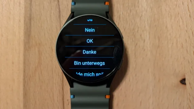 Interessant sind die KI-Kommunikationsfunktionen, die zum Beispiel beim Chatten helfen soll. Dies funktioniert zum Beispiel für Samsung und Google Messages, aber funktionierte auch mit WhatsApp. Wer auf eine Nachricht antworten möchte, kann auf eine Auswahl von KI-generierten Standard-Antworten wie «Ja, Nein, Ok, Danke, Bin unterwegs» auswählen, um diese zu verschicken.