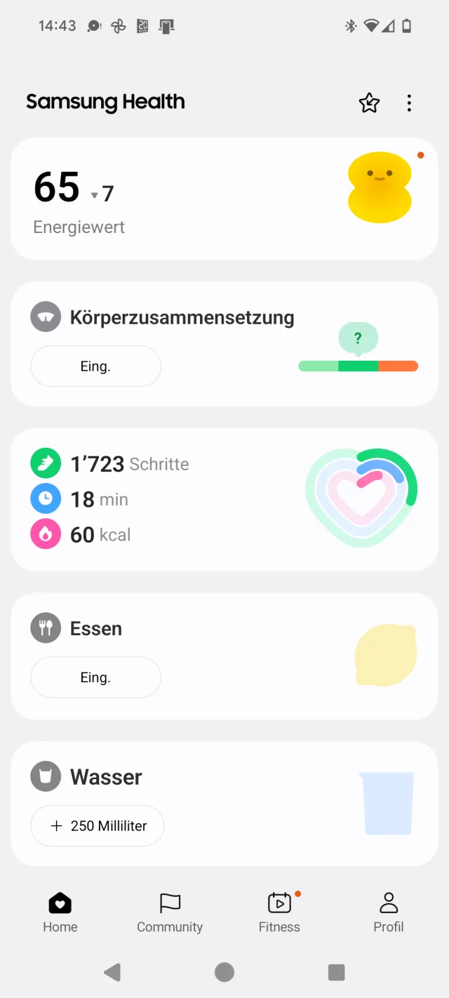 Wie bisher gibt es die Körperzusammensetzungs-Analyse, die Puls- und die Stressmessung, was alles zuverlässig funktioniert hat. Zudem können manuell der Blutdruck und der Blutzucker erfasst werden. Für Frauen gibt es wie bisher eine Zykluserfassung.