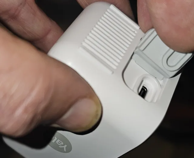 Der Smart-Device-Spezialist Yale lanciert mit seiner Smart-Outdoor-Cam eine Sicherheitskamera für den Wohnraum, aber auch den Ausseneinsatz. In der Verpackung befindet sich ausser der Cam ein Schwenkbügel mit Arretierungsmechanismus, um die Yale-Cam nach Gusto an der Häuserwand zu befestigen, ein zwei Dübel und Schrauben. Ergänzt wird das Set mit einem kleinen Faltblatt und 10 cm kurzem USB-C-Aufladekabel. Ein Netzgerät fehlt leider. Die Installation ist im Grunde genommen sehr einfach, birgt aber einen kleinen Fallstrick. Sie geht nämlich dann schief, wenn der in der Webcam fest verbaute Akku nicht aufgeladen ist.