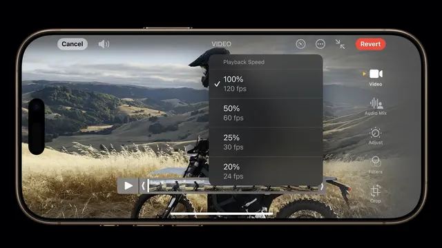 Videografen werden begeistert sein, dass sich Videos neu in 4K mit bis zu 120 fps in Dolby Vision drehen lassen: eine glatte Verdoppelung der Bildrate. Damit werden hochwertige Zeitlupen möglich. In der Kamera-App wird nachträglich die Wiedergabe nach Belieben über ein Einblendmenü heruntergeregelt. Oder die Zeitlupe wird in einer professionellen Software wie Final Cut Pro zurechtgebogen.